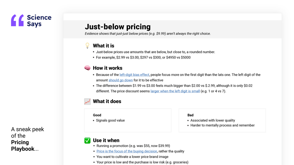 You probably know about price anchoring, and that $2.99 feels cheaper than $3. But those discoveries are from 30+ years ago. It’s what your competitors already use.